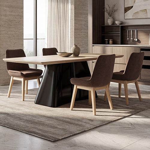 Modern Solid Wood Dining Table with Sculpted Metal Base