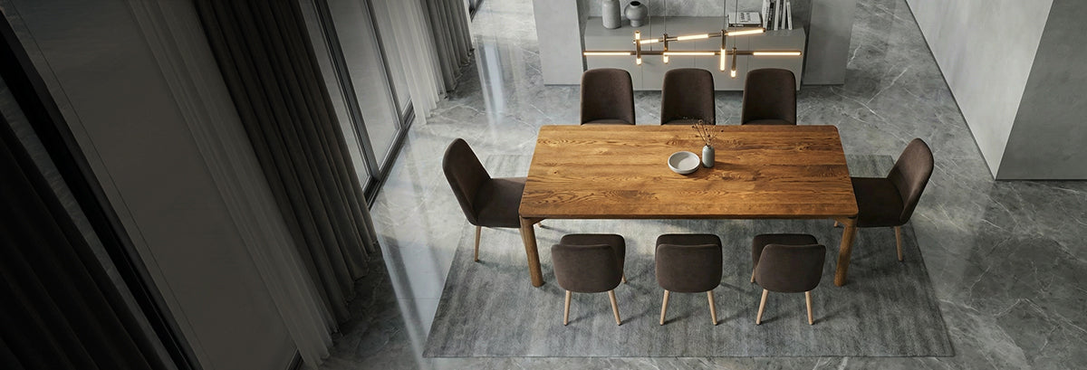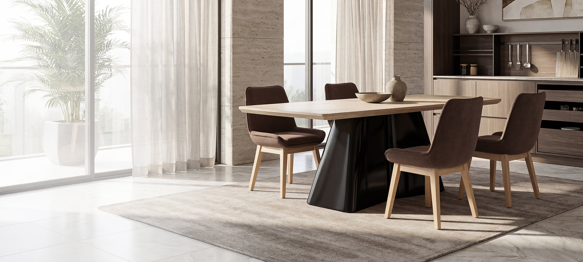 Architectural Solid Wood Dining Table with Spider-Leg Metal Base